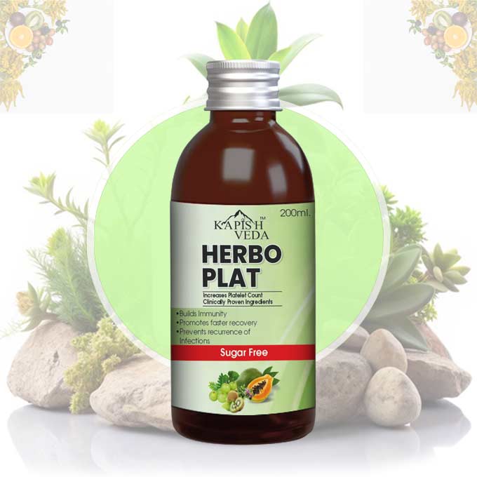 Herbo Plat Syrup is a sugar-free Ayurvedic formulation enriched with Papaya, Giloy, Aloe Vera, Amla, and other clinically proven herbs that help increase platelet count, boost immunity, and promote faster recovery.