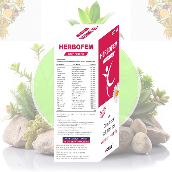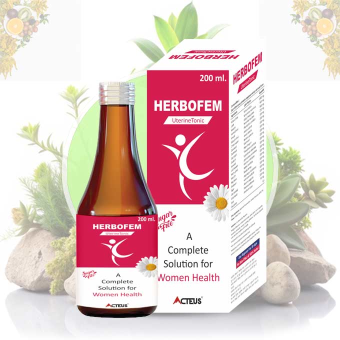 HERBOFEM Syrup is a sugar-free Ayurvedic uterine tonic formulated with 100% herbal ingredients. It supports women’s reproductive health, regulates menstrual cycles, relieves weakness & fatigue, and helps maintain hormonal balance naturally.