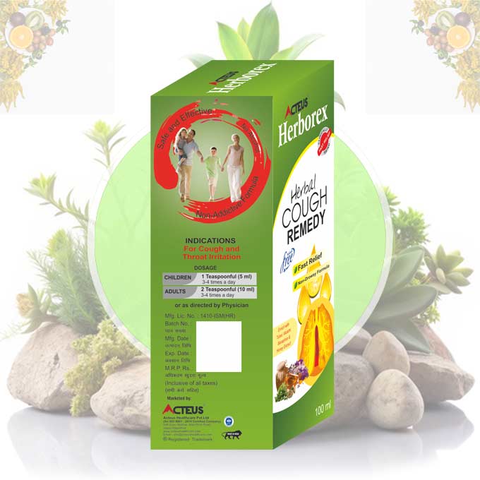 Acteus Herborex Herbal Cough Remedy is a natural, non-drowsy formula enriched with Tulsi, Mulethi, Banapasa & Honey Extract. It provides fast relief from cough, sore throat, and throat irritation while being safe for the entire family.