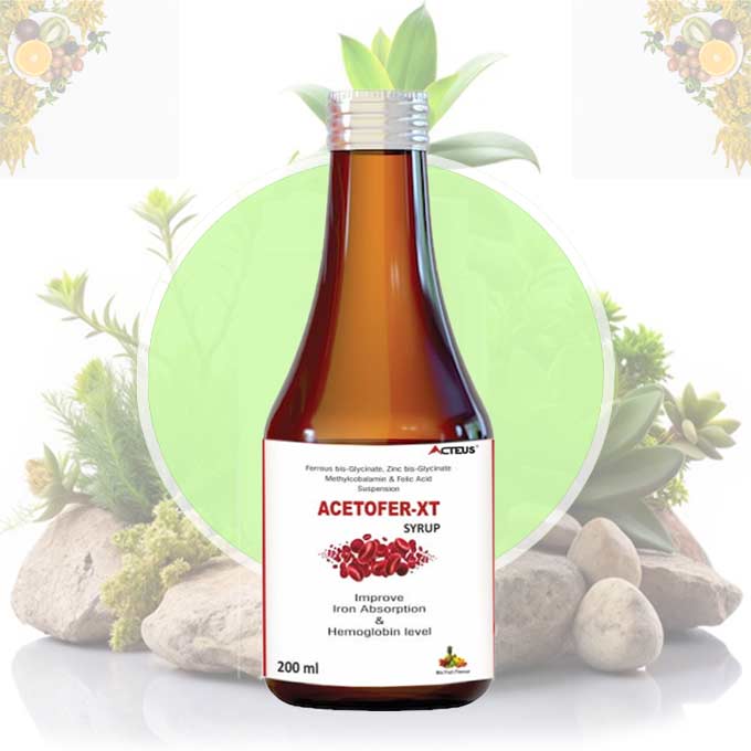 ACETOFER-XT Syrup is a scientifically formulated nutritional supplement enriched with Iron, Zinc, Folic Acid, and Methylcobalamin. It is designed to improve iron absorption, support healthy hemoglobin levels, and prevent nutritional deficiencies.