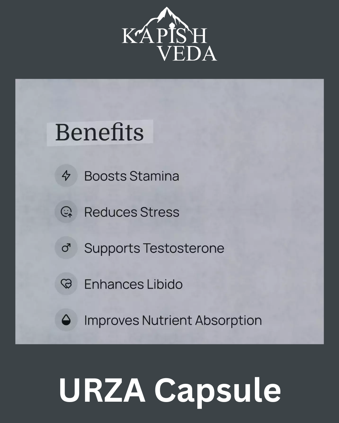 URZA Capsules are a natural Ayurvedic formulation designed to restore strength, stamina, and vitality. Enriched with powerful herbs like Shilajit, Ashwagandha, Safed Musli, Shatavari, and others, this supplement helps support overall energy, improves libido, and addresses both physical and psychological sexual dysfunction.